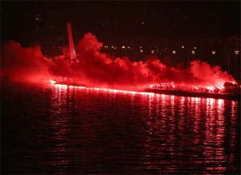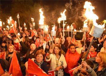 İzmir, Cumhuriyet'in 90. yılını muhteşemgösterilerle kutladı. İzmir Büyükşehir Belediyesi ve ilçe belediyelertarafından ortaklaşa hazırlanan kutlamalar, tüm başkanların ve binlerceİzmirlinin katıldığı fener alayı yürüyüşü ile başladı. Başkan Aziz Kocaoğlu veilçe belediye başkanları, Cumhuriyet Meydanından Gündoğdu Meydanına kadarhalkı selamlayarak yürüdü. Kortej, yürüyüşün ardından Gündoğdu Meydanındavatandaşlarla buluştu. Saatler 21.00i gösterdiğinde, İzmirin 16 ayrınoktasında atılan havai fişeklerle gökyüzünde adeta bir renk cümbüşü yaşandı.Karşıyaka Sahil, Gündoğdu Meydanı, Konak İskele, Halil Rıfat Paşa, GöztepeDenizatı Heykeli, Narlıdere Sahil Evleri, Güzelbahçe İskele, Çiğli Güzeltepe veÇiğli Merkez, 75.Yıl Mahallesi Bayraklı, Bornova Evka 4, Kadifekale, BucaŞahintepesi ve Buca içi, Gaziemir Evka 7 ve Limontepeden aynı anda atılanhavai fişekler kentin her yanından izlendi.