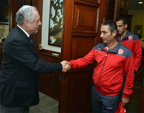 İzmir Büyükşehir Belediyesi’nin tüm kentlere örnek gösterilen İtfaiye teşkilatı, “İtfaiye Haftası” nedeniyle İzmir Büyükşehir Belediye Başkan Vekili Dr. Sırrı Aydoğan’ı makamında ziyaret etti. İzmir Büyükşehir Belediyesi Genel Sekreter Vekili Buğra Gökçe, Genel Sekreter Yardımcısı Barış Karcı, İtfaiye Daire Başkanı Serdar Yücel ve itfaiyecilerden oluşan heyet, çiçeklerle katıldıkları ziyarette gururlarını Başkan Vekili Dr. Aydoğan ile paylaştılar.