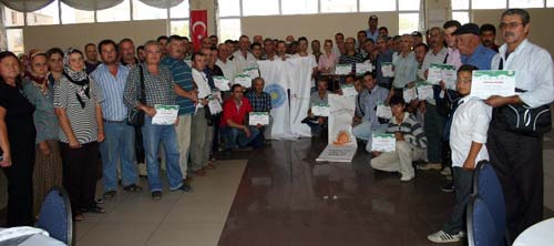 sonunda ise 131 üreticimize Seferihisar Belediye Başkanı Tunç Soyerin katıldığı bir törenle katılım belgesi verilmiştir. Ekim ayı içerisinde de eğitime katılıp başarılı olan 20 üreticimiz şu an Ege Üniversitesi Ziraat Fakültesine ait olan ve Tarladan Sofraya İyi Tarım Projesi kapsamında parselizasyonu yapılan 6.3 dekarlık bir alanda 6-7 ay boyunca iyi tarım uygulamalarını gerçekleştireceklerdir.