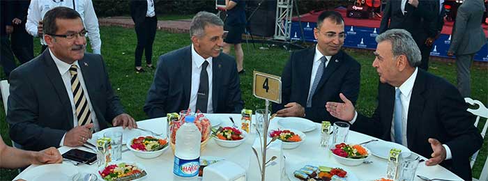 Samimi bir havada gerçekleşen iftar yemeğinin ardından davetlilere seslen İzmir Büyükşehir Belediye Başkanı Aziz Kocaoğlu, vatan savunması için hayatını kaybeden şehitleri anarak şöyle konuştu: Biz bu vatan için, bu bayrak için, bu millet için canlarını seve seve veren şehitlerimize ve onların yakınlarına minnet ve şükran duygularımızı ifade etmek için buradayız. Ruhları şad olsun. Hem dinimizde hem de kültürümüzde şehitler en müstesna yerdedir. Bu vatan için yaralanan, uzuvlarını kaybeden değerli gazilerimize de minnet ve şükran duygularımızı ifade ediyorum. Sizlerle iftihar ediyoruz. Son yıllarda ülkemizde sevinerek ifade etmek istiyorum ki, şehitler gelmiyor, şehit cenazelerine gitmiyoruz. 78 milyon ülke vatandaşının isteği ve dileği, ülkemizde barışın, kardeşliği, sevginin ve saygının daim olmasıdır.