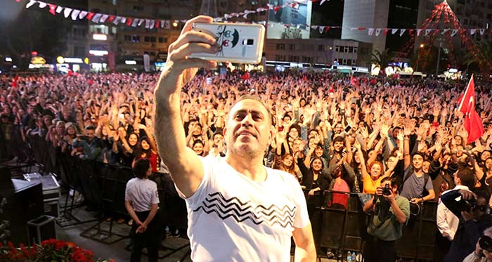 Bornova Belediyesi’nin 19 Mayıs Atatürk’ü Anma Gençlik ve Spor Bayramı kapsamında düzenlediği Haluk Levent Konseri, Bornova Cumhuriyet Meydanı’nda tarihi günlerden birini yaşattı. Son dönemde dillerden düşmeyen İzmir Marşı’nı Meydan’ı dolduran binlerce İzmirli hep bir ağızdan söyledi. Vatandaşların coşkusuna ortak olan İzmir Büyükşehir Belediye Başkanı Aziz Kocaoğlu ve Bornova Belediye Başkanı Olgun Atila, kimsenin Büyük Önderimiz Atatürk’e dil uzatmasına izin vermeyeceklerini dile getirdi.