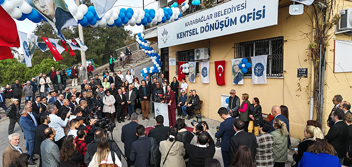Kınay, da burada yaptığı konuşmada “Bugün yalnızca bir ofis açmıyoruz; Karabağlar’ın geleceğini birlikte kuracak bir süreci başlatıyoruz. Amacımız hak sahiplerinin yerinde, güvenli ve sağlıklı bir yaşam alanına kavuşması” diye konuştu