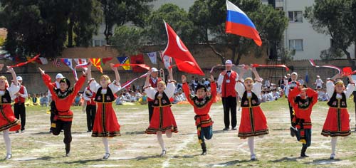 Ulusal Egemenlik ve Çocuk Bayramı Karşıyakada da görkemli bir törenle kutlandı. Karşıyaka Stadında düzenlenen kutlamalara yabancı çocukların katılması coşkuyu daha da arttırdı. 19. Uluslararası Karşıyaka Çocuk Şenliği için Karşıyakada bulunan yabancı ülke çocuklarından Belarus, Endonezya, Makedonya, Rusya ve Türkiyeden Kars ekibi, gösterilere katıldı. Alanı dolduran yaklaşık 10 bin kişi resmi geçit sırasında öğrencileri alkışlayarak destek verdi. Yabancı konukların gösterileri de izleyenlerden büyük beğeni topladı. Karşıyaka Şenliği için gelen konuk ülke gruplarından Letonya ve Polanya İzmir Bayram törenine katılırken, Litvanya, Gürcistan ve KKTC Çiğli Bayram törenine, Makedonya, Bulgaristan ve Bosna Hersek Menemende, Kosova, Bulgaristan, Bayraklı Bayram Törenlerinde, Malezya ve Romanya, Menderes Bayram töreninde, Arnavutluk ve Slovenya ise Foça Bayram töreninde gösterilerini sundu. Konuk çocuklar törenler sonrası Doğal Yaşam Parkını giderek bol bol eğlendi.