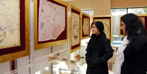 Topkapı Sarayı Müzesi Yazma Eserler Kütüphanesinden, Türk İslam Eserleri Müzesinden, Süleymaniye Kütüphanesinden alınan Müslüman coğrafyacılara ait geleneksel haritalar, Kaşgarlı Mahmudun dünya haritası ile Mürseliyeli İbrahim, Piri Reis, Ali Macar Reis el-Niksari ve 1732 yılında İbrahim Müteferrika tarafından yayınlanan Katip Çelebinin Cihannüma isimli eserinde yer alan haritalar sergi açılış kokteyline katılan İzmirliler tarafından ilgiyle izlendi.