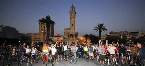 Rengarenk giysileri ve ışık saçan bisikletleriyle İzmir caddelerinde toplu olarak görmeye alıştığımız Perşembe Akşamı Bisikletçilerine Büyükşehir Belediye Başkanı Aziz Kocaoğlu da katıldı. Göztepe İskelesi önünde toplanan 200ü aşkın bisiklet tutkununa kendi bisikletiyle eşlik eden Başkan Kocaoğlu, yol arkadaşlarına sevindirici mesajlar da verdi; yeni yapılacak yol ve bulvarlarda mutlaka bisiklet yollarının ayrılacağını söyledi.