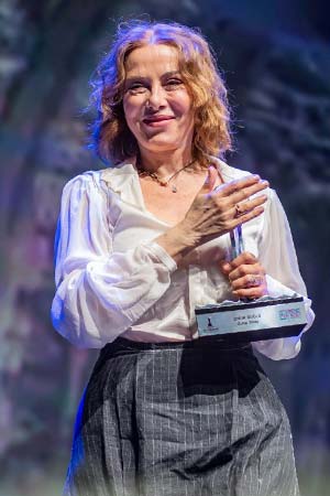 Müzisyen Vedat Sakman’ın açıkladığı En İyi Özgün Müzik Ödülü’ne Karanlık Gece filminin müzikleri ile layık görülen Cansun Küçüktürk’e ödülünü Zuhal Olcay verdi.