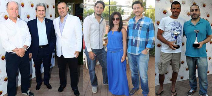 Dereceye giren tenisçiler kupalarını Küçük Kulüp DerneğiYönetim Kurulu Başkanı Emre Sarıgedik, CHP İzmir Milletvekili Aytun Çıray veNecdet Kestellinin elinden aldı.