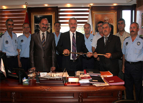 5 ay gibi kısa bir sürede Zabıta Karakollarını oluşturarak, güzel bir çalışma ortamı sağlayan ve toplu sözleşme imzalayarak, memurlarını mutlu eden Başkan Kürüme, zabıta amirleri kılıç ve kama hediye ederek sürpriz yaptı, teşekkür etti. 1800 yılı Fransız yapımı, savaş görmüş bir subayın kılıcı ile 1900lü yıllarda yine savaşta kullanılmış kılıç ve kama hediye eden zabıta amirleri, Zabıta Müdürü Ramazan Baran ile birlikte Kürümü makamında ziyaret etti. Baran, Ben ve arkadaşlarım sizinle birlikte çalışmaktan mutluluk ve gurur duyuyoruz. Özveriyle, gururla Karabağlara en iyi hizmeti vermeye devam edeceğiz diye konuştu.