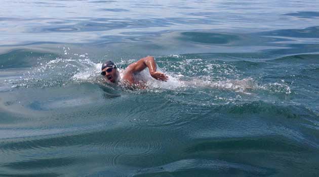 Buz gibi havada aklini mi yitirdin çık o sudan’ derken denize girdim 10 kilometreler yüzdüm. 3 senedir burayı geçebilmek için o kadar çok çalıştım ki. Kendi kendime yemin ettim:
