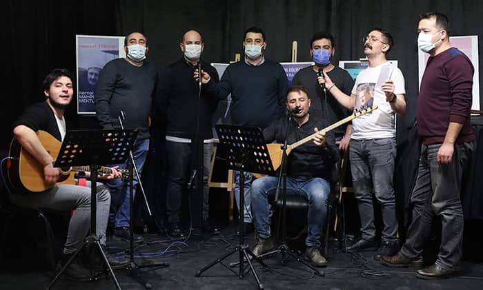 Nazım Hikmet’in hayatından kesitlerin sunulduğu etkinlikte, usta şairin memleket, devrim, hasret ve aşk şiirleri Vedat Araz’ın yorumlayışıyla sevenlerle buluştu. Şair Araz’a Murat Mengirkaon bağlamasıyla, Kurtuluş Doğru ise gitar ve vokalde eşlik etti.