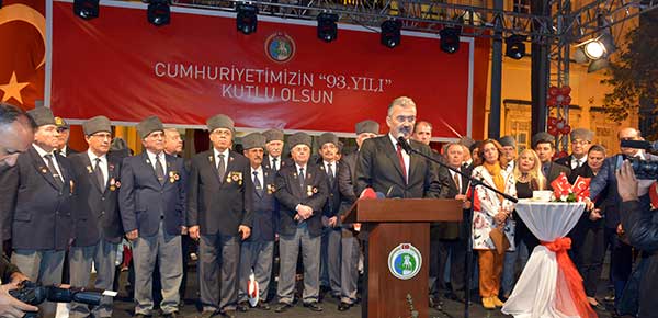 Konuklarına hitap eden Vali Erol Ayyıldız, Cumhuriyetin kuruluşunun 93’ncü yılını coşkuyla kutladıklarını söyledi. Vali Ayyıldız, “Bayramımız şimdiden sonsuza kadar kutlu ve mutlu olsun. Bizlere bu coşkuyu yaşatan Cumhuriyetimizin kurucusu büyük Önder Atatürk’ü, onun kahraman silah arkadaşlarını aziz şehitlerimizi rahmetle, gazilerimizi sonsuz minnet, şükranla anıyoruz” dedi.