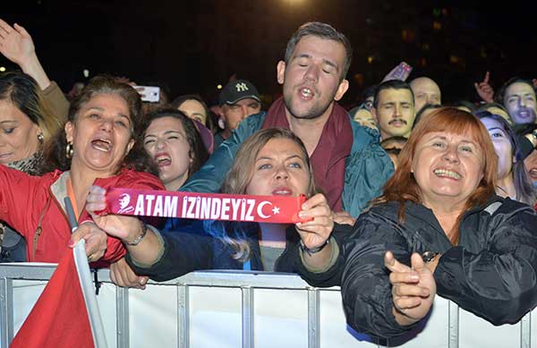 Bir ara sahneye gelen Mustafa Kemal Seyhan isimli bir vatandaşla "Hangimiz Sevmedik" şarkısını söyleyen Nilüfer, sahnede kaldığı 1,5 saatlik sürede 20 şarkıyı alanı dolduran sevenleriyle birlikte seslendirdi. Ünlü sanatçı Feridun Düzağaç'ı sahneye davet ederek "Kavak Yelleri" şarkısında düet yaptı. İki sanatçı “Onuncu Yıl Marşı”nı tüm İzmirlilerle birlikte söyledi. Nilüfer’in ardından sahne alan Feridun Düzağaç ise sevilen 10 parçasıyla İzmirliler ile birlikte oldu.