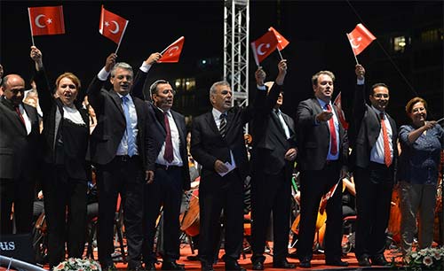 Fener Alayının ardından Gündoğdu Meydanı'nda Devlet Opera ve Balesi, Koro, Solo ve Orkestrası sahne aldı. 130 sanatçıdan oluşan dev koro, Onuncu Yıl Marşı'nı Başkan Aziz Kocaoğlu ve törene katılan belediye başkanlarıyla birlikte seslendirdi. Gecenin sonunda ünlü sanatçı Selda Bağcan İzmirlilerle buluştu. En güzel şarkılarını 9 Eylül için seslendiren sanatçıya, İzmirliler de hep bir ağızdan eşlik etti.