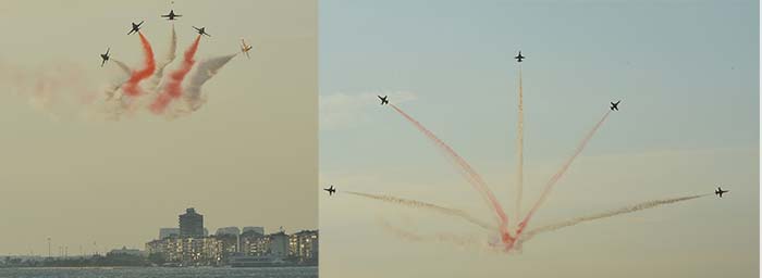 9 Eylül etkinliklerinin en heyecanlı anları Türk Yıldızlarının gösteri uçuşu sırasında yaşandı. Gündoğdu Meydanında toplanan İzmirliler, kentin üzerinde birbirinden zor ve tehlikeli manevraları büyük bir uyum içinde sergileyen uçakların gösterisini nefeslerini tutarak izledi. Türk Hava Kuvvetlerinin disiplin ve etkinliğinin anlatılmasını hedefleyen Türk Yıldızları, 9 Eylül kutlamalarına ayrı bir renk kattı. Büyükşehir Belediye Başkanı Aziz Kocaoğlu, gece düzenlenen törenler sırasında Türk Yıldızlarının gözü pek pilotlarına birer teşekkür plaketi verdi.