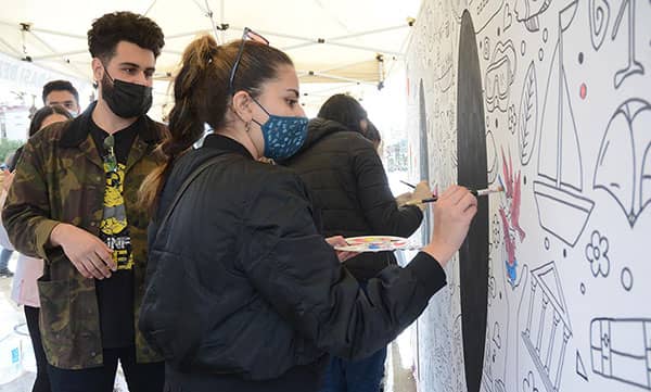 Kuşadası, 20 Mart Dünya Mutluluk Günü nedeniyle renkli görüntülerin oluştuğu bir etkinliğe ev sahipliği yaptı. Kuşadası Belediyesi tarafından İsmail Cem Dostluk ve Barış Meydanı’nda gerçekleşen etkinlikte vatandaşlar palet ve fırçaları ellerine alarak Kuşadası Belediyesi tarafından hazırlanan mutluluğun resmini diledikleri renklere boyadı. Güvercinada ve el heykeli gibi Kuşadası’nın sembollerinden oluşan resim 7’den 77’ye birçok Kuşadalının vurduğu fırça darbeleriyle rengârenk bir hal aldı. Etkinliğe çok sayıda vatandaşla birlikte Kuşadası Belediye Başkan Yardımcısı Seyfi Seyhan Suvari ve Belediye Meclis Üyesi Emre Fazlılar da katıldı.