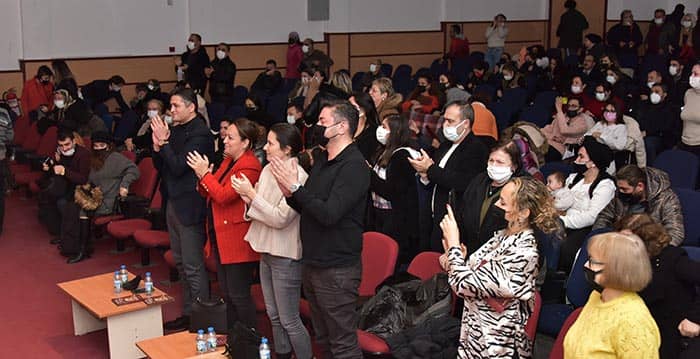 Gecenin sonunda sahneye davet edilen Aliağa Belediye Başkanı Serkan Acar, konsere katılımlarından dolayı Ezgi Nalkesen’e Helvacı Kilimi hediye ederken Şef Barış Doğan’a başarılı çalışmalarından ötürü çiçek takdimde bulundu.