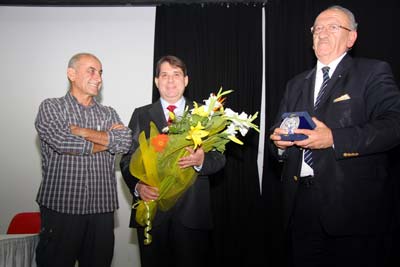 Tariş Zeytin-Zeytinyağı Birliği Yönetim Kurulu Başkanı Cahit Çetin de Nazım Alpmana İz TVde kendisi hakkında hazırladığı belgeselden dolayı bir plaket verdi. Alpman, söyleşiden sonra kitabını imzaladı.
