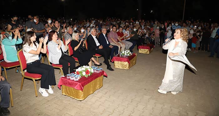 Konser sonunda Başkan Mehmet Eriş, Bedia Akartürk’e çiçek takdim ederek Ödemişlilere yaşattığı türkü şöleninden dolayı kutladı. Konser anı fotoğrafının çekimi ile son buldu.