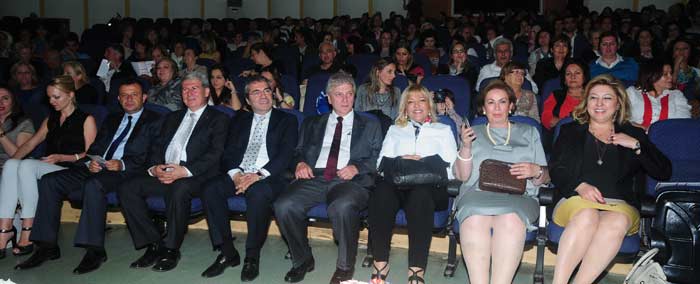 EBSO Yönetim Kurulu Başkanı Yorgancılar, EBSO Vakfı Bayanlar Birliği Başkan Yardımcısı Hatice İhsan Özduran, Kültür Sanat Komitesi Başkanı Latife Tezcan, oyunun yönetmeni Kerim Dündar, rol alan sanatçılar ve gecenin sponsorları arasında yeralan Özgür Kablo Yönetim Kurulu Başkanı Osman Öz ile Estado Mobilya temsilcisi İrem Sarıkahyaya teşekkür belgesi ve plaket v