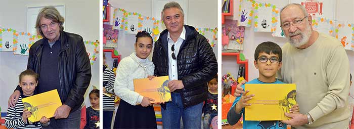 Alman Kültür Merkezi Müdürü Dr. Rodolf Bartsch, İzmir Uluslararası Kukla Günleri Festival Direktörü Selçuk Dinçer ve Fotoğraf Eğitmeni Tayfun Kocaman kitap dağıtımı yaptı
