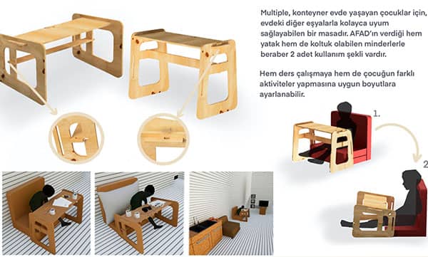 Bu projeyle dezavantajlı ilkokul çocukları için açık kaynaklı, montaja hazır çalışma alanı mobilyası tasarlandı. Her öğrenci, kendi hedef kitlesini seçerek buna uygun çalışma mobilyası fikirleri geliştirdi. Ortaya, çocukların hem oyun hem çalışma alanlarına dönüşebilen kolay üretilebilir, kolay kurulup sökülebilir, tekrar kullanılabilir ve kullanım ortamına uygun tasarımlar çıktı.