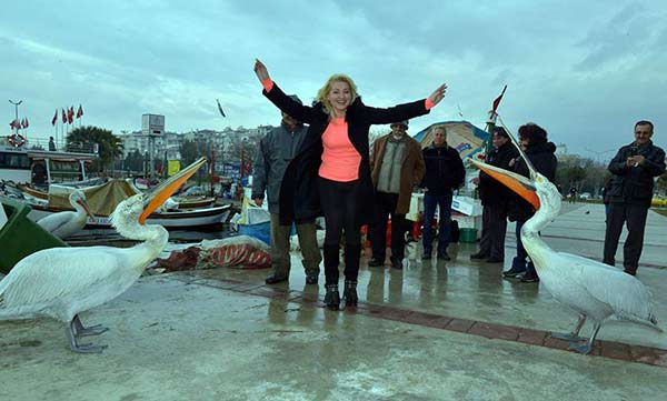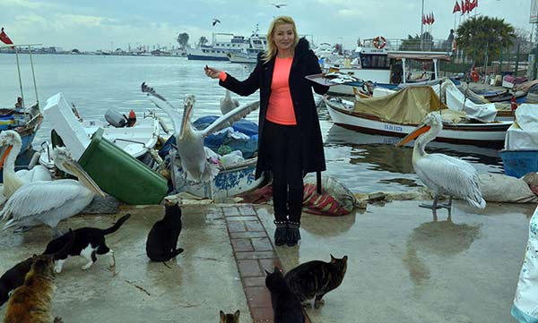İş adamı eşi Cem Arısoy ile hasret gidermesinin ardından çok sevdiği ve kendisi için önem taşıyan yer ve kişilerle hasret gidermesinin ardından bazen aldığı buğdaylarla güvercin beslerken, bazen de kilolarca sardalya ile Bostanlı Balıkçı Barınağı’nın simgesi olan pelikanları, ayaklarının dibinde dolaşan kedileri, köpekleri ve bazen tepelerinde dolaşan martıları besliyor.