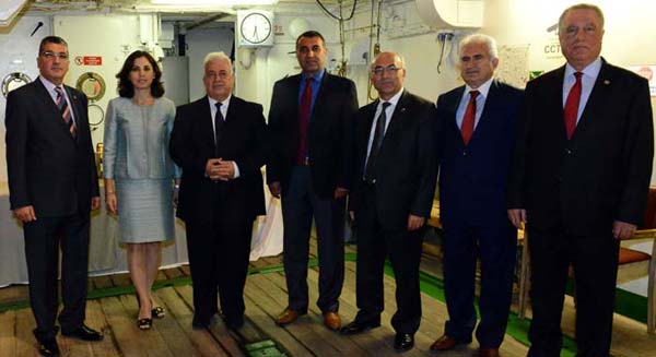 Resepsiyona İzmir Alsancak Liman Mülki İdare Amiri ErdoğanÖzdemir, Vali Yardımcısı Mustafa Harputlu, İzmir Büyükşehir Belediye BaşkanVekili Dr. Sırrı Aydoğan, Ege Deniz Bölge Komutanı Tuğamiral Gürel Kaynak, DokuzEylül Üniversitesi Rektörü Prof. Dr. Mehmet Füzün, Ege Gümrük Bölge MüdürüKaptan Kılıç, İzmir Liman Başkanı DurmuşÜnüvar, Gümrük Müdürü Melehat Özdemir ile davetliler katıldı.