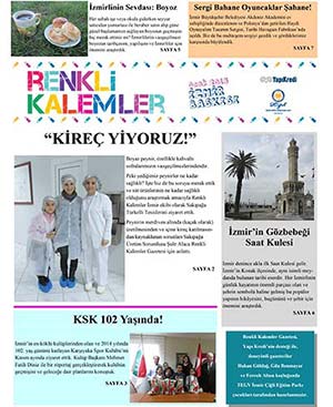Renkli Kalemler gazetesinin İzmir baskısında çocuklar peynir üretiminin hangikoşullarda olması ile ilgili haber çalışmasını manşete taşındı. Manşetinharicinde İzmirlinin Sevdası:Boyoz, Sergi Bahane Oyuncaklar Şahane!,İzmirin Gözbebeği Saat Kulesi, KSK 102 Yaşında gibi başlıklar da gazetede yer aldı.