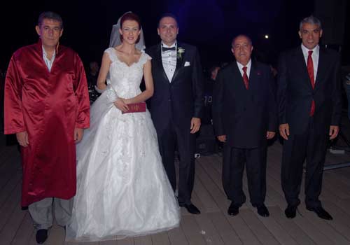 6 yıl önce Gelinin babası Serdar Samurun görevi sırasında Geliboluda tanışan çiftin 6 yıllık arkadaşlığı taşıdığı ninikahın tanıklıklarını Sanko Holding Enerji Yönetim Kurulu Başkanı Emekli Korgeneral Korgeneral Dursun Bak ile Altınbaş Holding Yönetim Kurulu ve Göztepe Başkanı İmam Altınbaşın üstlendiği nikahı Balçova Belediye Başkanı Mehmet Ali Çalkaya kıydı.