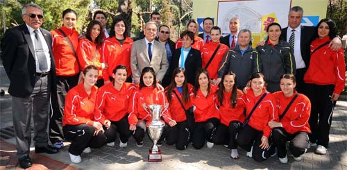 Türkiye şampiyonu olan İzmir Büyükşehir Belediyesi Bayan Hentbol Takımı, şampiyonluk kupasını Büyükşehir Belediye Başkanı Aziz Kocaoğluna getirdi.