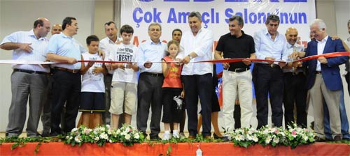 İzmirin önemli turizm merkezlerinden Özdere de çok amaçlı salonuna kavuştu. Başkan Aziz Kocaoğlu, projesi Büyükşehir Belediyesi tarafından geliştirilen, açılır kapanır teleskopik tribünlü salonun açılış töreninde, bu salonlar sayesinde hem çocuklara ve gençlere spor yapma imkanı tanındığını, hem de tiyatro, konser ve düğün gibi sosyal etkinliklere mekan sağlandığını söyledi.