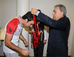 İzmir Büyükşehir Belediyesinin Avrupada dereceye giren başarılı sporcuları, Singapurdaki Gençlik Olimpiyatlarından önce Başkan Aziz Kocaoğlu tarafından ödüllendirildi.