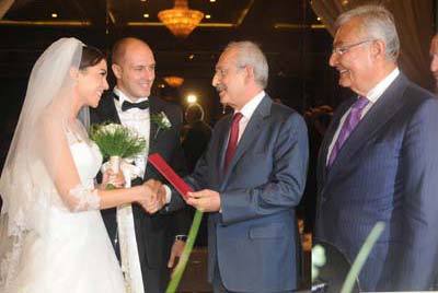 Susam ve İnanç çiftineşahitlik eden CHP Lideri Kemal Kılıçdaroğlu "Her ikisini de yürektenkutluyorum. Şunu peşinen söylemeliyim ki çocuk sayınıza karışmıyoruz. Mutlu birberaberlik dileğiyle, çocuklarının cumhuriyetçi, Atatürkçü, laik- demokratolmasını istiyoruz. Damada baktım, saygıda kusur yok. Sesi de evet derken fenaçıkmadı. Allah mutlu etsin. Temel'e sormuşlar 'nerelisin' diye. 'Henüzevlenmedim' demiş. Damadın nereli olduğunu da bundan sonra daha iyianlayacağız" dedi.