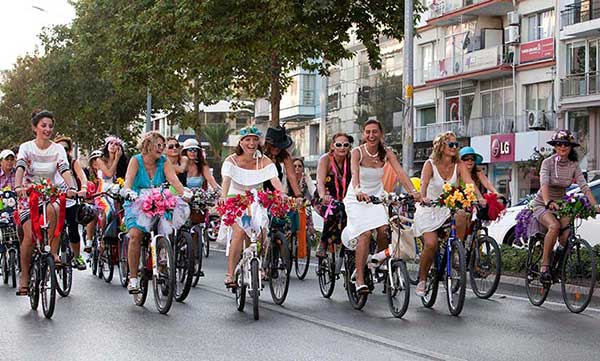 Amerikan Koleji’nin öğretmenlerinden Sema Gür tarafından 2013 yılında hayata geçirilen Süslü Kadınlar Bişiklet Turu, bu yıl 25 Eylül Pazar günü yapılacak. Herhangi bir gruba veya kuruluşa bağlı olmadan gönüllü kadınlar tarafından düzenlenen tura katılacak olan bisikletler yine gelin arabaları gibi süslenecek ve egsoz kokusu olmadan pedallara basılacak.