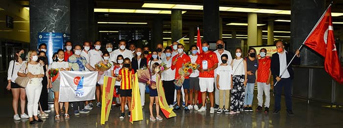 Optimist Avrupa Şampiyonası’nda Avrupa İkincisi olan Medine Havva Tatlıcan, Milli Sporcumuz Defne Isabel Ramirez Zambrano ile Milli Takım Antrenörümüz Alican Selcik ve Takım Lideri Emrah Taşlı, İzmir Adnan Menderes Havalimanı’nda coşkuyla karşılandı.