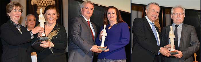 Vali Mustafa Toprakın konuşmasının ardından Turizm Profesyoneli dolanda - Wyndham Grand İzmir Özdilek Oteli Genel Müdürü Funda Çam, Konaklama Tesisi (Resort Otel) Boyalık Beach Hotel Spa, Çeşme, Konaklama Tesisi (Şehir Oteli) Hilton İzmir Oteli, PROFESYONEL TURİST REHBERİ DALINDA KONSTANTİNO REGGİO, Sağlık Turizmine Katkı Ödülü Medikalpark Hastaneler Grubu, Seyahat Acentasında İtaltur Turizm Seyahat Acentası, Tur Operatörü Dalında Turkuaz Turizm, Şef Aşçı Nejdet Polat, Yeme İçme Eğlence Tesisi Beğendik Abi Lokantası, Onur Ödülü Zühal Yorgancıoğlu, Özel Ödül İse Aşçı Nevzat Pekee verildi.