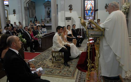 Kilisede 1 saatlik törenle Çiftin nikahı İtalyan geleneklerine göre kıyıldı. Crowne Plazada ise Balayı Odasında gerçekleşen İmam Nikahının ardından resmi nikah kıyıldı.