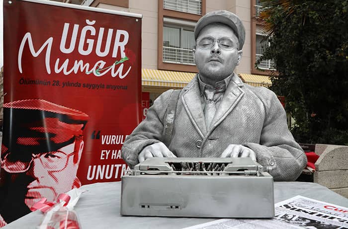C-4 tipi plastik bombanın patlaması sonucu enkaza dönüşen Mumcu’nun 06 YR 245 plakalı aracının temsili ve Karşıyaka Soğuk Heykel Atölyesi oyuncularının canlandırdığı Uğur Mumcu, Gaziemirlilere duygulu anlar yaşattı. Uğur Mumcu’nun fotoğraflarının yer aldığı fotoğraf sergisi ise ziyaretçilerini Mumcu’nun anılarında yolculuğa çıkardı. 22 Ocak Cuma günü saat 16.00’ya kadar Sevgi Yolu’nda açık kalacak sergi, 25-29 Ocak tarihlerinde Gaziemir Belediye Hizmet Binası zemin katında, mesai saatlerinde ziyarete açık olacak.