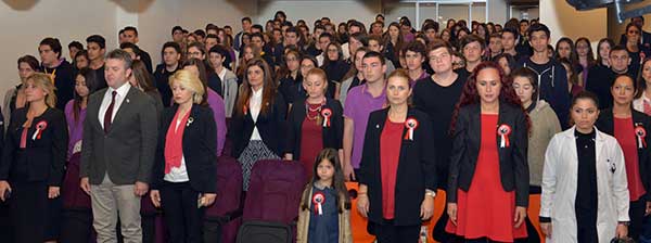 Uğur Okulları Genel Müdürü Yücel Yücel, “Cumhuriyetimiz, birlik olmuş bir milletin karşısında hiç kimsenin duramayacağının en büyük kanıtıdır. Yokluklara, imkansızlıklara ve dış güçlerin bütün baskılarına rağmen kazanılan zafer tüm dünyaya örnek olmalıdır. 48 yıldır Türkiye Cumhuriyeti'ne eğitim alanında değer katmaya çalışan bir kurumun mensupları olarak, her zaman Cumhuriyet'in aydınlattığı yolda ilerledik. Hedefimiz, bu yolda emin adımlarla ilerlerken milletimizi daha da ileri taşıyacak, çok kültürlü, donanımlı, vizyoner, dünya barışına katkı sağlayan nesiller yetiştirmektir.” diye konuştu. Tören okul korosunun Cumhuriyet temalı şarkı ve marşları seslendirmesiyle devam etti.