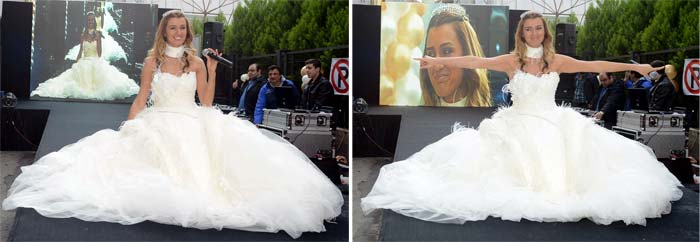 Defile sonrası açılışın bir diğer sürpriz ismi sinema oyuncusu Banu Alkan oldu. Uzun zamandır aşk yaşamadığını vurgulayan Alkan, mağazada gelinlik giyerek herkesi şaşırttı. Banu Alkan Aşk istiyorum dedi.