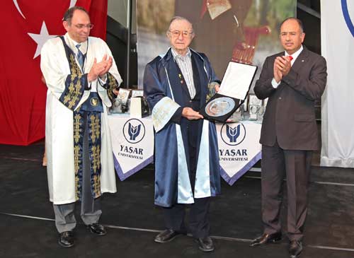 Mezuniyet töreninin onur konuğu olan Cumhurbaşkanı Başdanışmanı, Eski Merkez Bankası Başkanı Durmuş Yılmaz, İzmirde öğrenim görmenin bir ayrıcalık olduğunu belirterek, Güzel ve belki de sizin için hüzünlü bir öğrencilik dönemini geride bıraktınız. Ama asıl hayat şimdi başlıyor. Ben zorluklar içerisinde okudum. Ama hiçbir zaman yılmadım. İstediklerimi, hayallerimi gerçekleştirmek için sürekli çalıştım. Siz de bunu yapmalısınız dedi. Durmuş Yılmazın kendi öğrencilik yıllarından, çalışma hayatından verdiği örnekler ve Mevlanadan aktardığı bir öyküyle süslediği konuşması törene katılanlardan büyük alkış aldı.