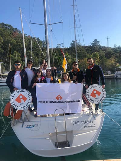 Marmaris Uluslararası Yat Kulübü’nün düzenlediği ve büyük heyecana sahne olan Campus Cup’ın finalinde 15 takım yarıştı. İEÜ öğrencileri Umur Doğuş Onat, Seher Arı, Yağmur Ercan, Melis Aydın, Begümnur Küçükcan, Oğulcan Taşlı ve Nehir Hakverdi’den oluşan 7 kişilik takım, belirlenen rotayı ilk önce tamamlamak için mücadele etti.