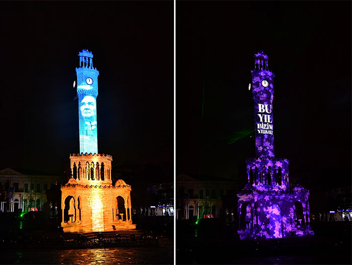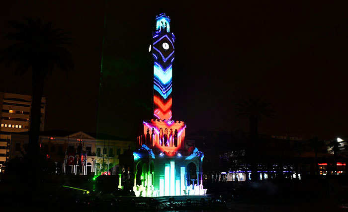 İzmir Büyükşehir Belediyesi’nin hazırladığı çevrimiçi yılbaşı programı yeni yılı evlerinde karşılayan İzmirlilere coşku dolu anlar yaşattı. Büyükşehir’in sosyal medya hesaplarından ve İzmir Tube üzerinden yayınlanan program, 23.40’ta Saat Kulesi’ndeki ışık gösterisi ile başladı. Gösteriyi genç sanatçı Ekin Ekinci’nin piyano performansı izledi. Büyükşehir’in dayanışma ve umut temalarıyla hazırladığı ve Saat Kulesi’ne yansıtılan özel mapping gösterisi ise Okan Bayülgen’in seslendirmesiyle evlere konuk oldu. “Şartlar ne olursa olsun biz birlikte mutluyuz” sözleriyle başlayan şov, İzmir Marşı eşliğinde görsel bir şölene dönüştü.